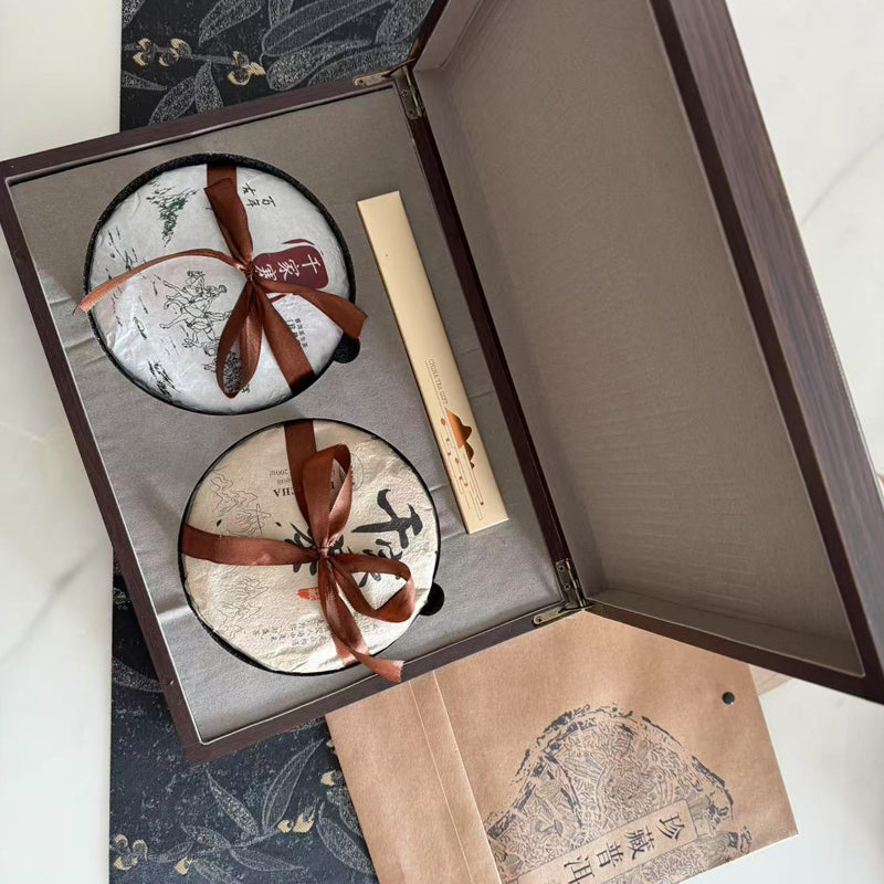 Double Pu‘er tea cake wooden gift box set